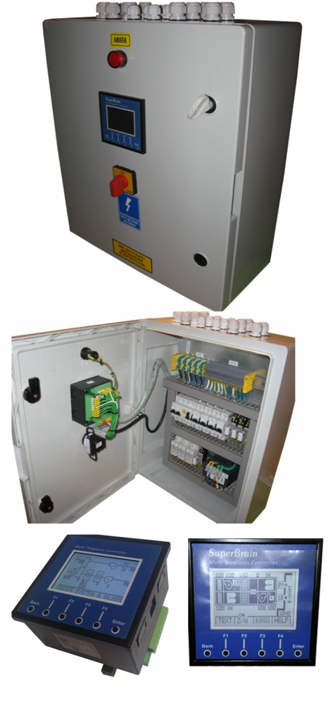 - sterownik swobodnieprogramowalny SuperBrain, RS-485 ModBus z graficznym ekranem LCD,
